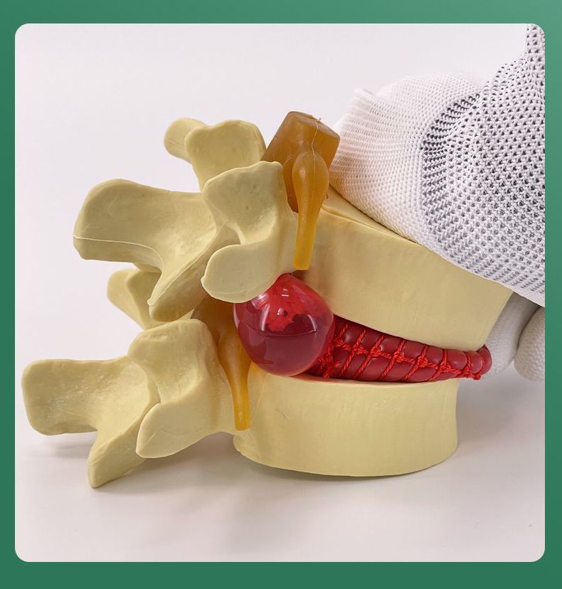 Teaching demonstration model of lumbar disc compression in human body, spinal bone pathology, lateral pressure protrusion, lumbar disc compression...